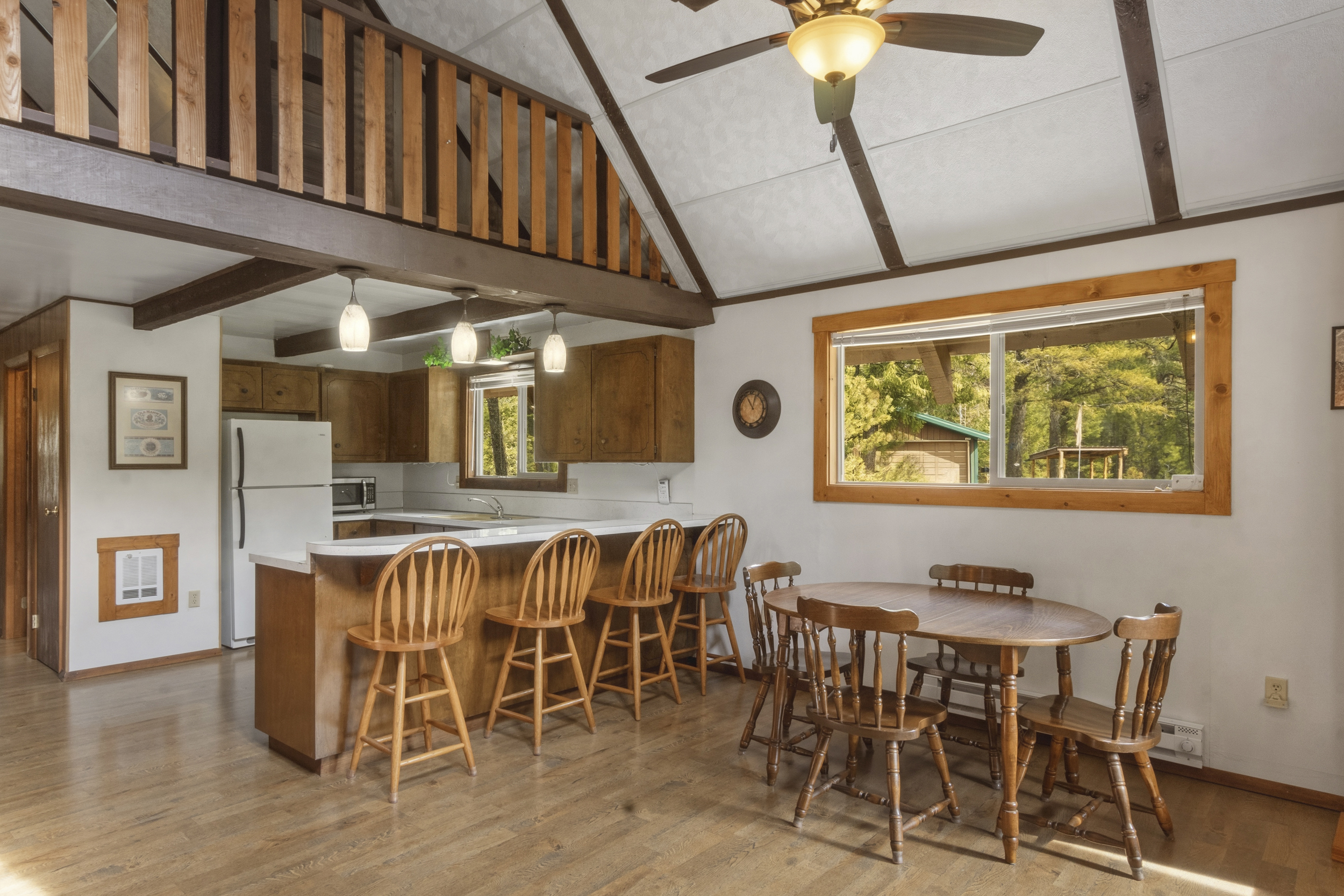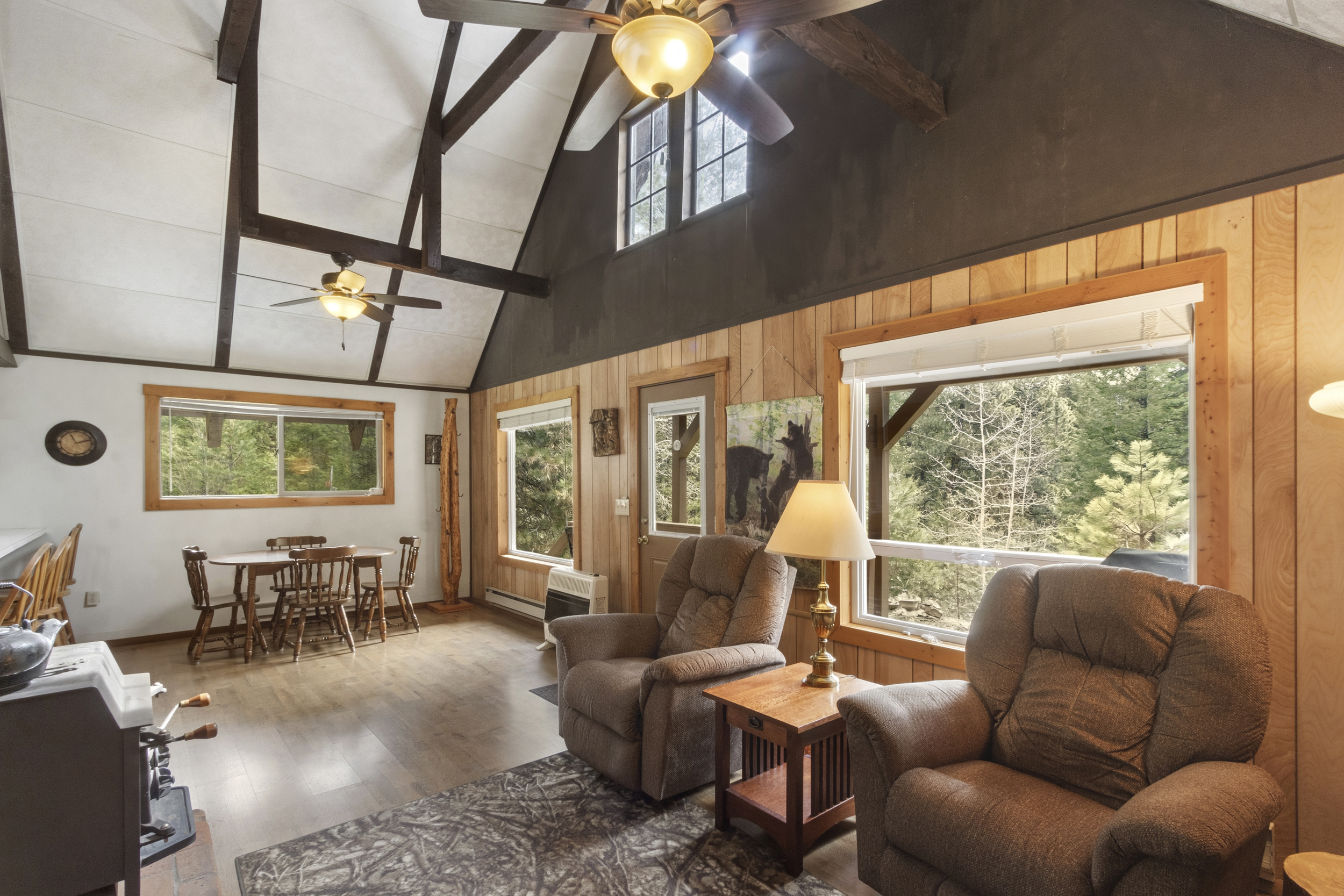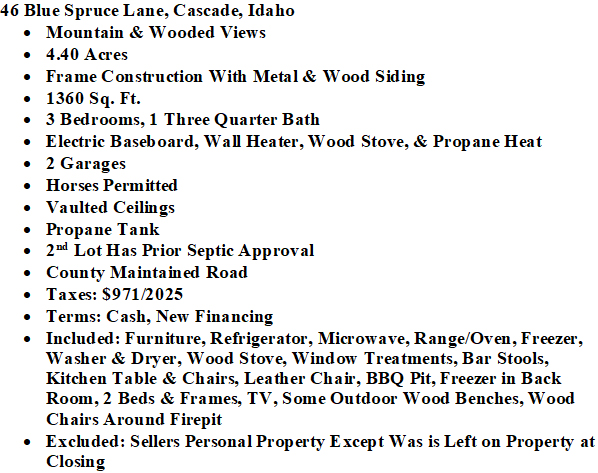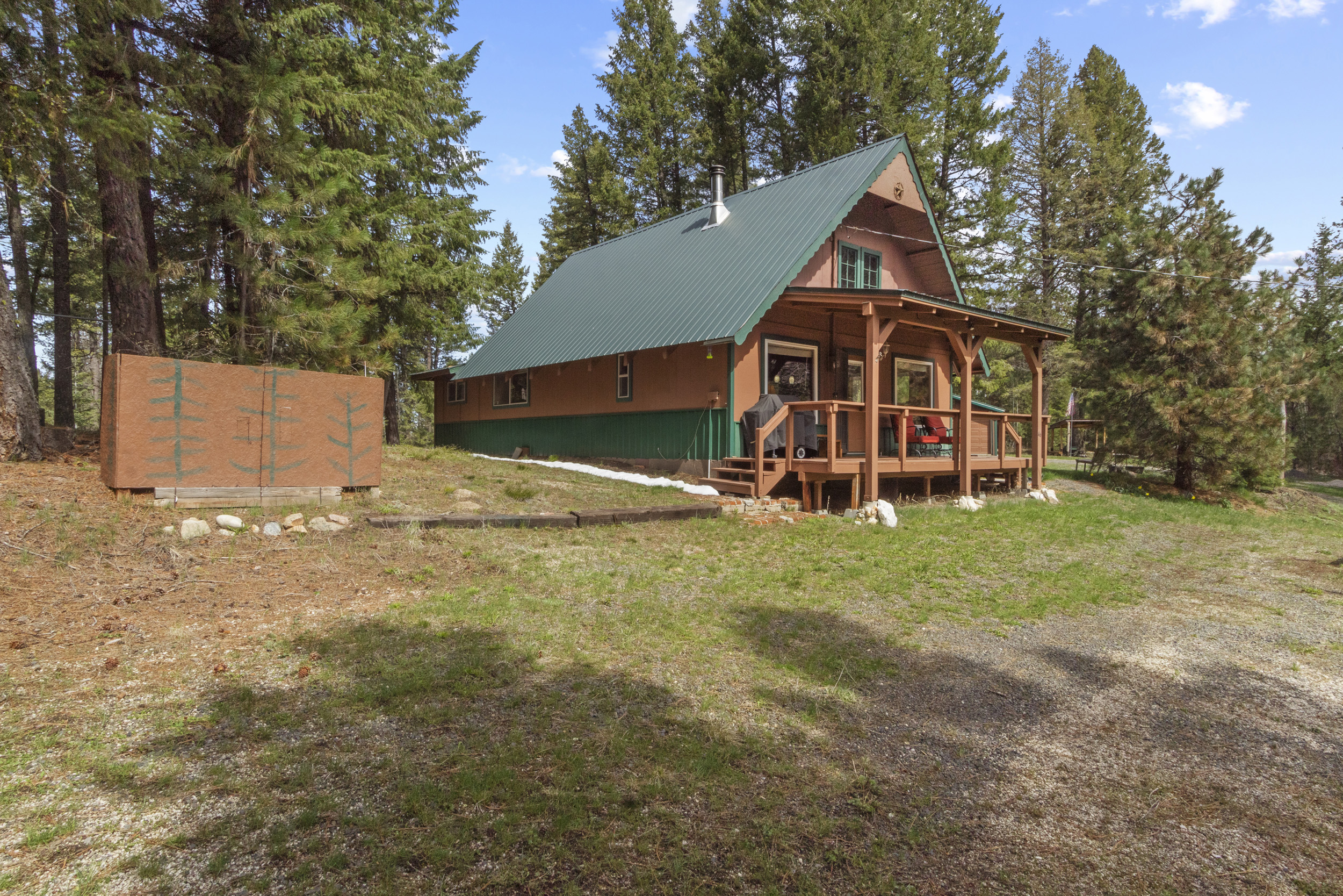 | CHARMING CABIN ON 4.4 FORESTED ACRES! Perfect blend of peace and privacy. This 1,360 sq ft cabin features an open, inviting atmosphere ideal for entertaining. Wonderful front covered deck for watching the sunrise with morning coffee OR relax in the shade with a cool drink in the summer afternoons. Two garages provide ample storage for vehicles, tools, or recreational gear. Plenty of exterior parking for RV’s, guests and family. Property boundaries are well marked with a fun walking trail to explore the entire acreage. Consisting of 2 lots, the property provides excellent potential to build an additional cabin. The second lot has prior septic approval. The existing septic is a 2 bedroom system. Located close to miles of backcountry recreation, this is an outdoor enthusiast’s dream. Whether you’re seeking a year-round residence or a getaway retreat, this property delivers space, tranquility, and opportunity. $525,000 (544265) (98982915) (enlarged home image) (plenty of parking) (1st entrance) (beautiful setting) (2nd entrance to property) (looking west & north) (open floor plan) (living area) (dining area) (big picture windows) (plenty of natural light in kitchen with breakfast bar) (bonus room) (3/4 bath) (main floor bath) (bedroom main floor) (large bedroom upstairs) (looking down from loft) (upper garage) (enjoy a good book on your porch) (lower garage) (time for s'mores) (additional information) (plat map) (county map) (Homes & Cabins Page) Map Location |